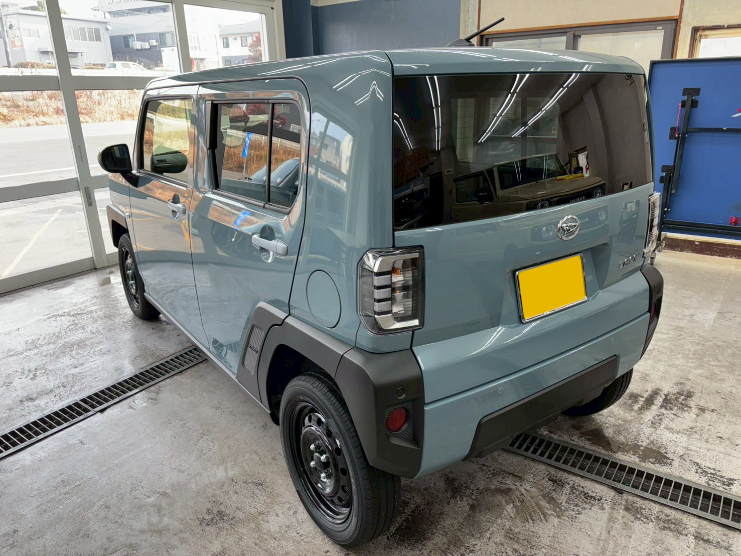 カーフィルム、ダイハツ タフト リヤ全面(2%)遮熱スモークフィルム施工