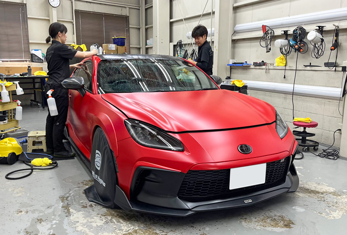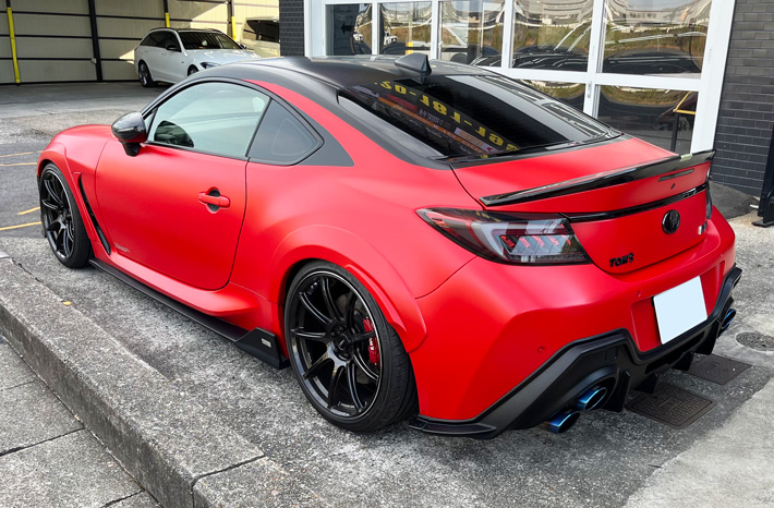 山﨑武司さん「GR86」、マットブラックのカーラッピング部分を貼替え希望でご入庫。