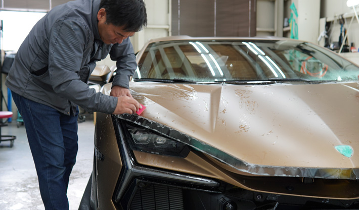 質感を崩さずにボディ保護を可能とする「艶消しタイプ」のPPFを施工します。