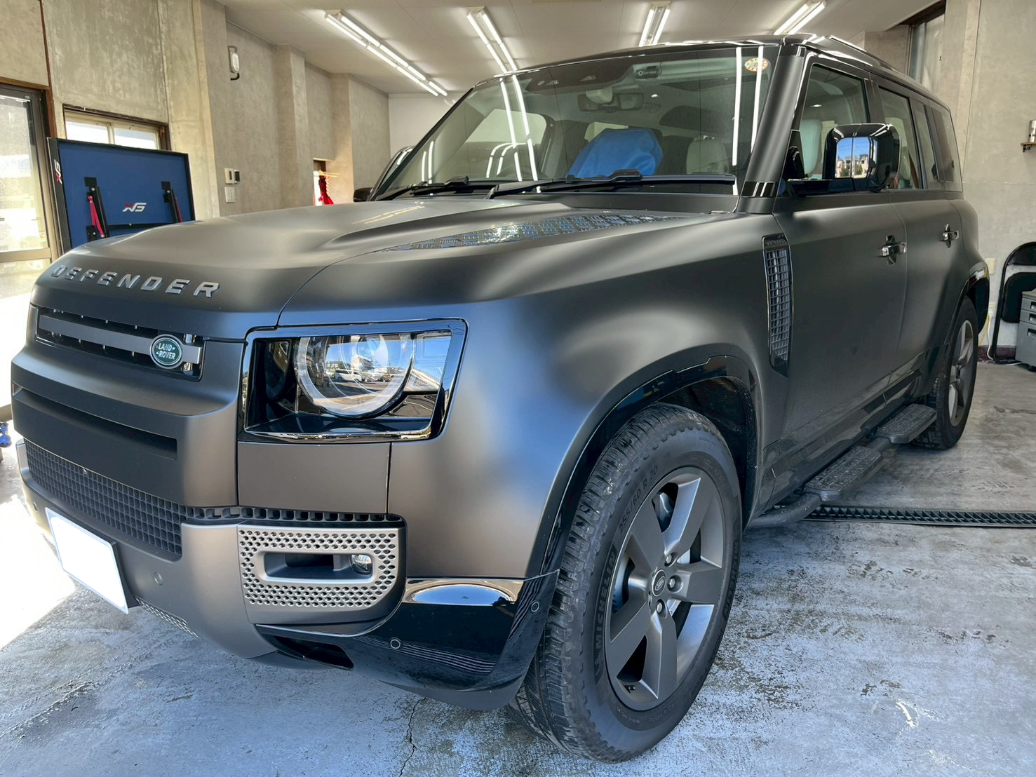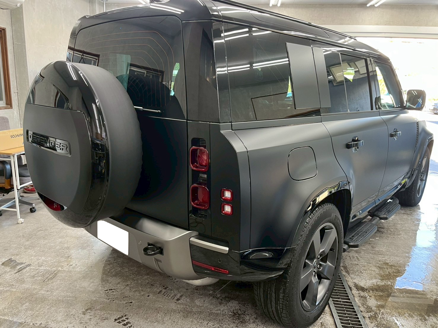 カーフィルム、ランドローバー ディフェンダー リヤ全面(20%)遮熱スモークフィルム施工
