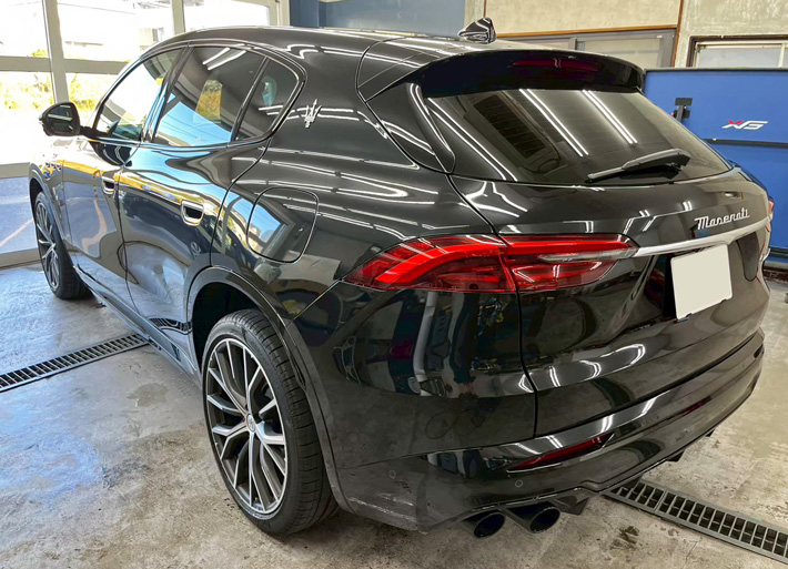 カーフィルム、マセラティ グレカーレ リア全面(GY-15IR)遮熱スモークフィルム施工