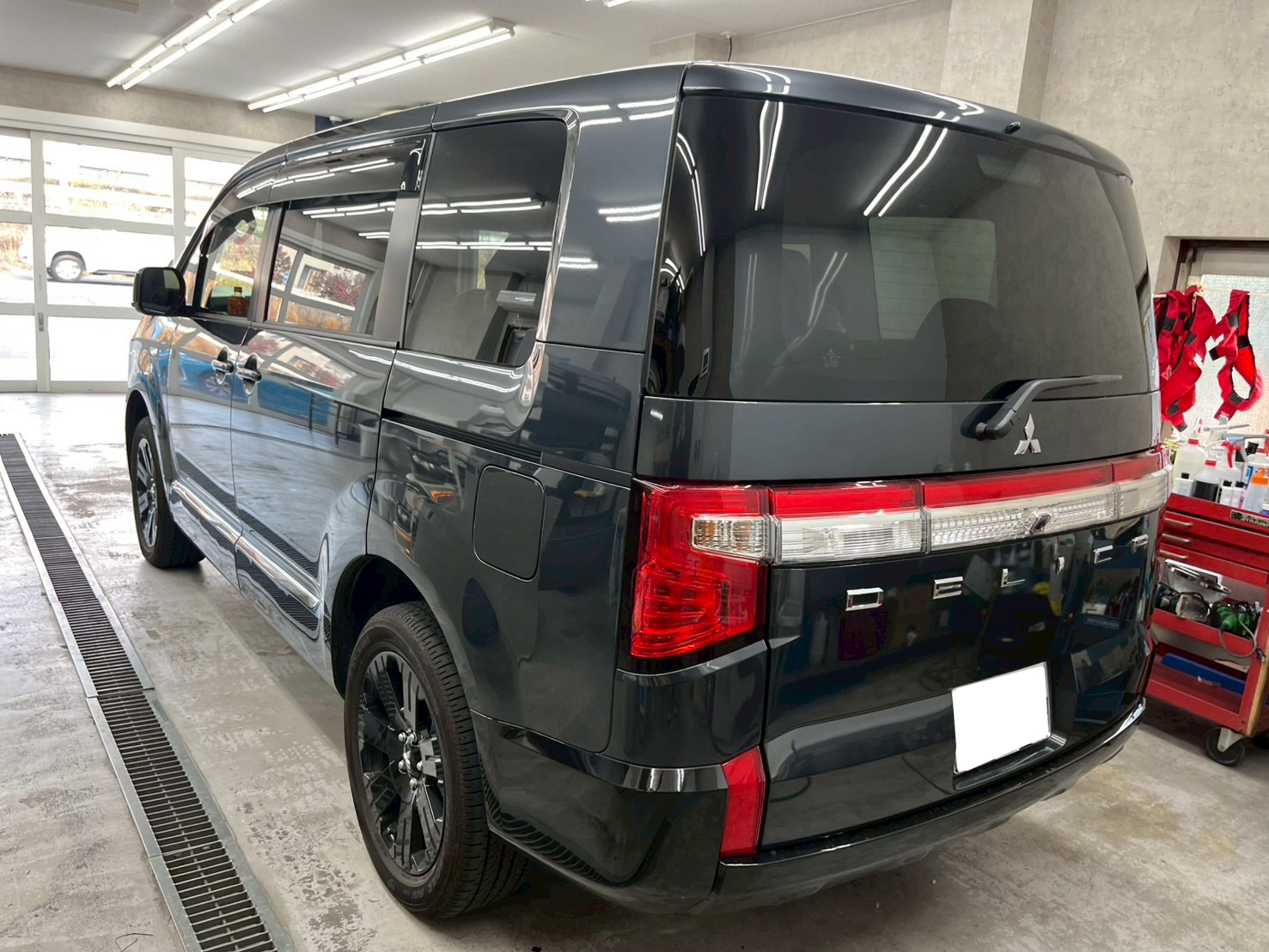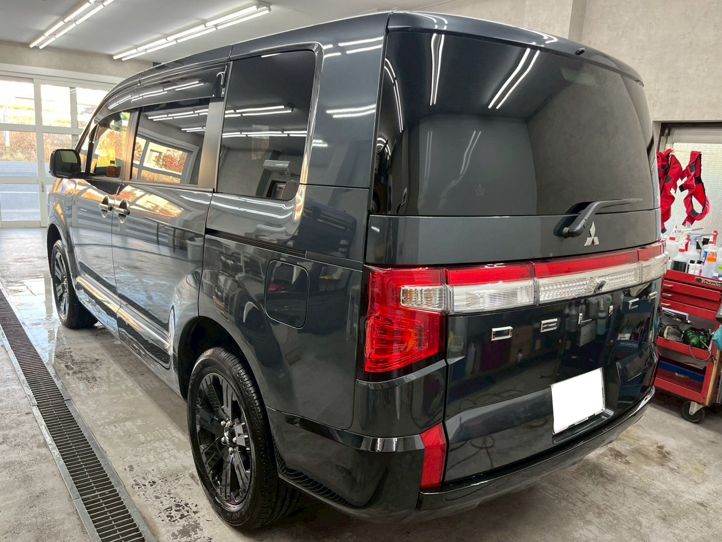 カーフィルム、ミツビシ デリカD:5 リヤ全面(7%)遮熱スモークフィルム施工
