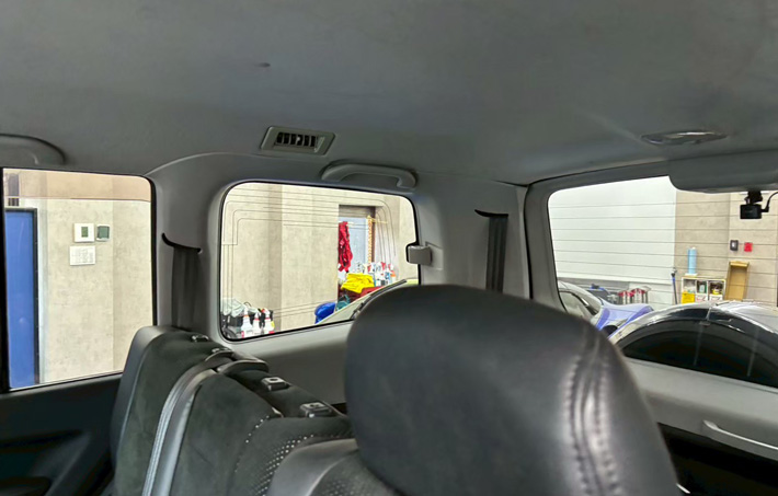 カーフィルム、三菱 パジェロ ガラス全面(IR-90HD)透明遮熱フィルム施工