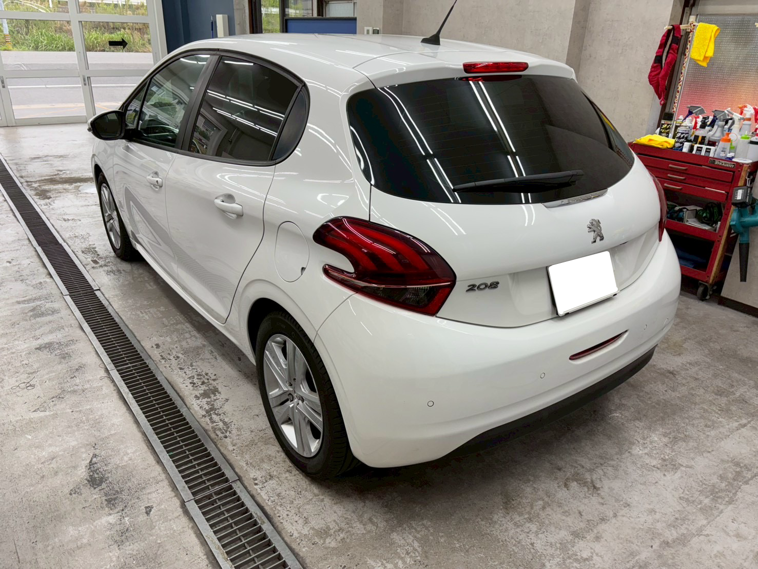 カーフィルム、プジョー 208 リヤ全面(20%)遮熱スモークフィルム施工