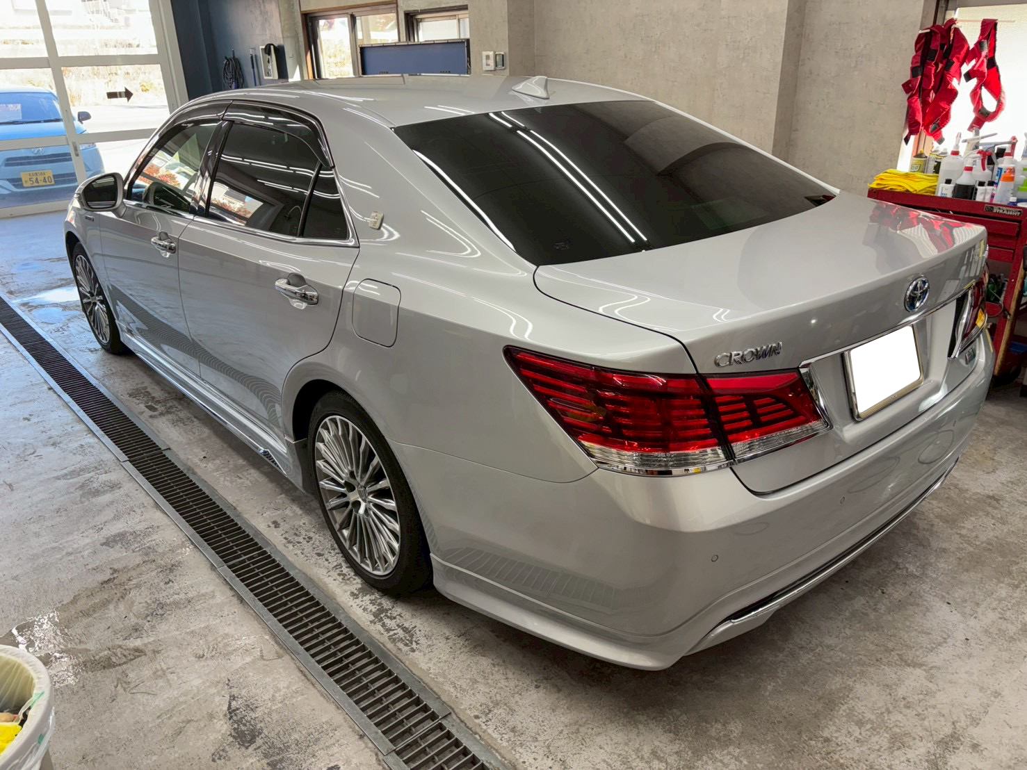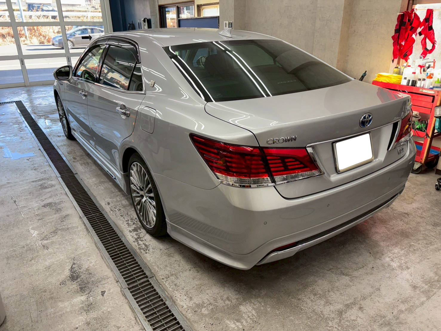 グリーンガラスを採用しているクラウンですが、プライバシーガラスのようにスモークになっている訳ではないため、車内が透けて見えてしまっています。