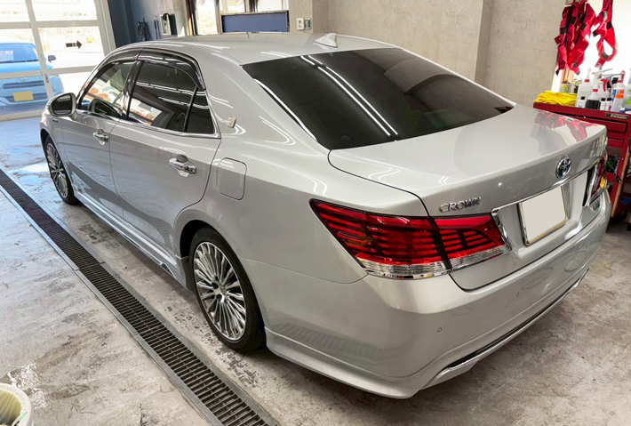 カーフィルム、トヨタ クラウンマジェスタ リア全面(GY-5IR)遮熱スモークフィルム施工