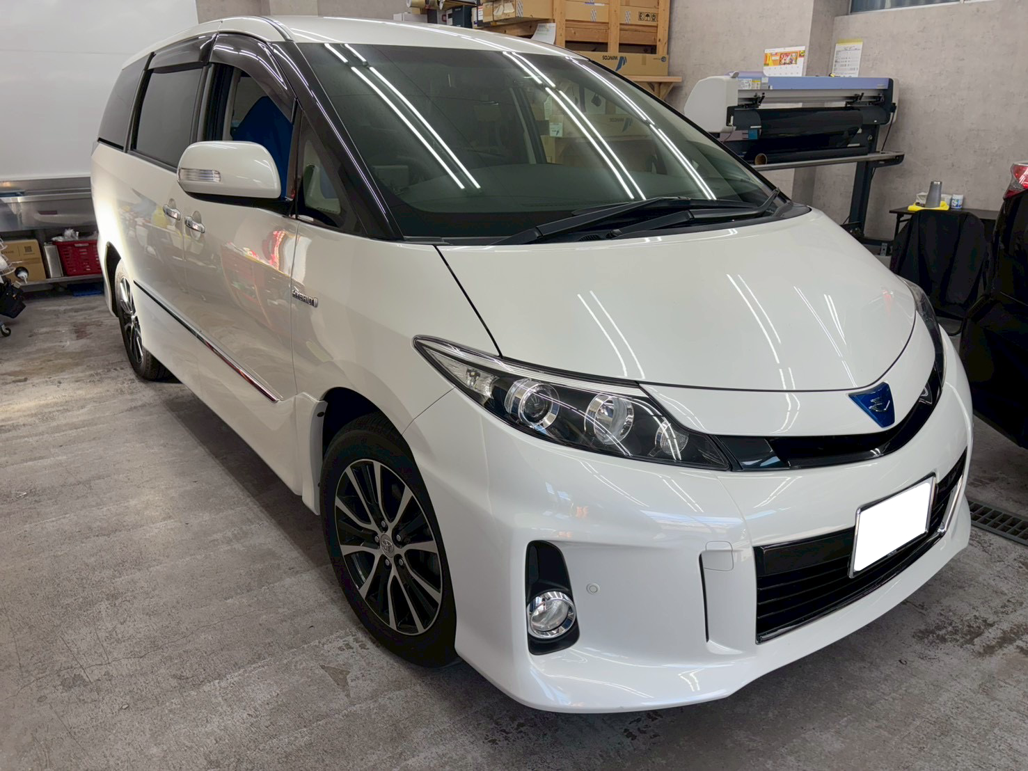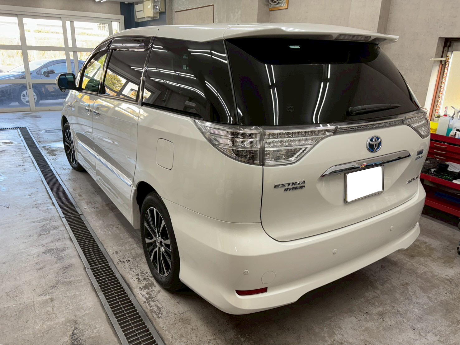 少し薄めのプライバシーガラスを採用しているエスティマですが、今回は3%のスモークフィルムを施工致しました。