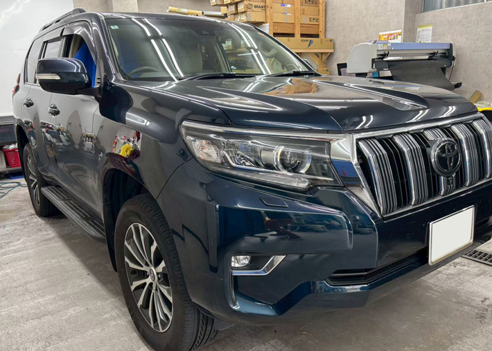 カーフィルム、トヨタ ランクルプラド リア全面(GY-15IR)遮熱スモークフィルム施工