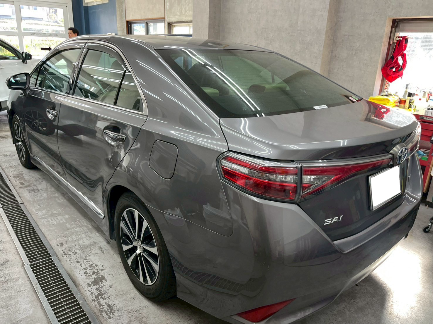 カーフィルム、トヨタ サイ リヤ全面(2%)遮熱スモークフィルム施工