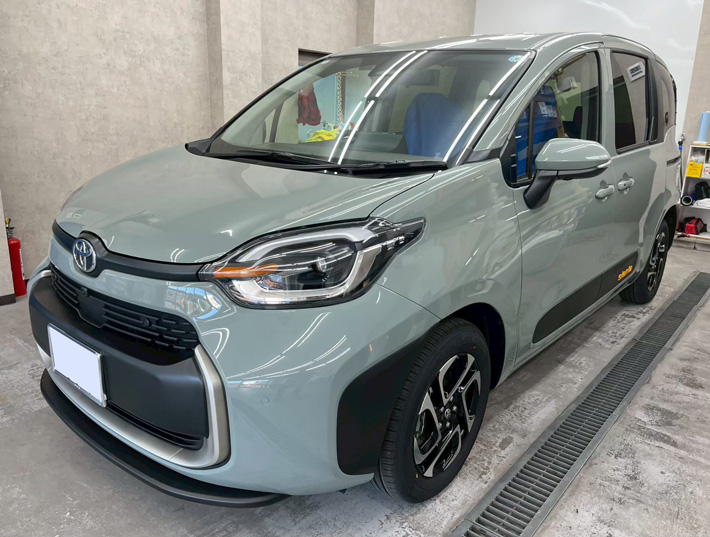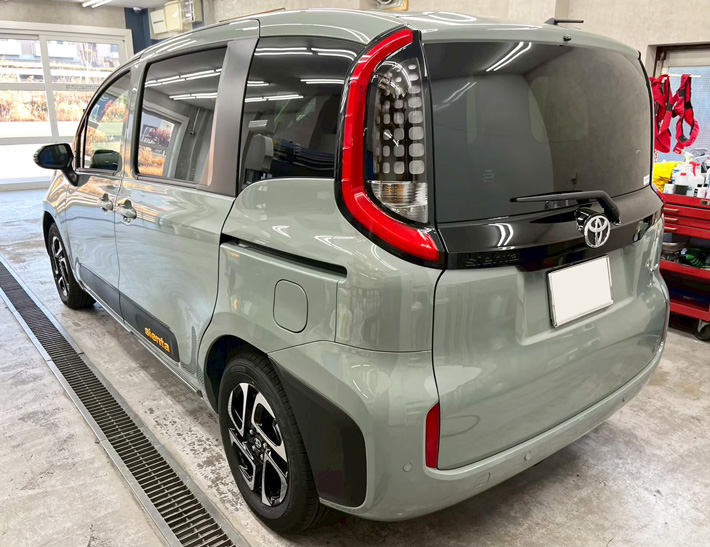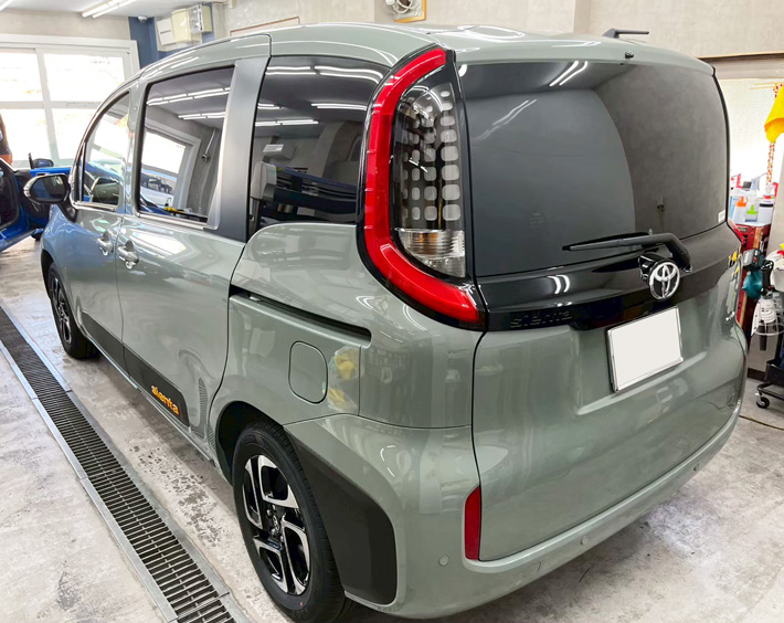 カーフィルム、トヨタ シエンタ リア全面(HCD-10G)遮熱スモークフィルム施工