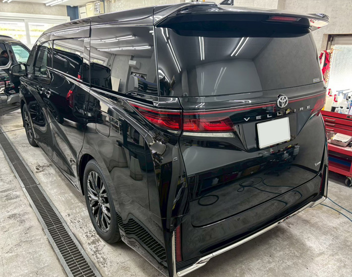 カーフィルム、トヨタ ヴェルファイア リア全面(GY-3IR+HCD-03G)遮熱スモークフィルム施工