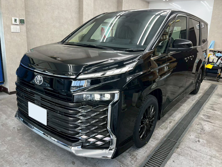 カーフィルム、トヨタ ヴォクシー リア全面(ドット対応5%IR+GY-3IR)遮熱スモークフィルム施工
