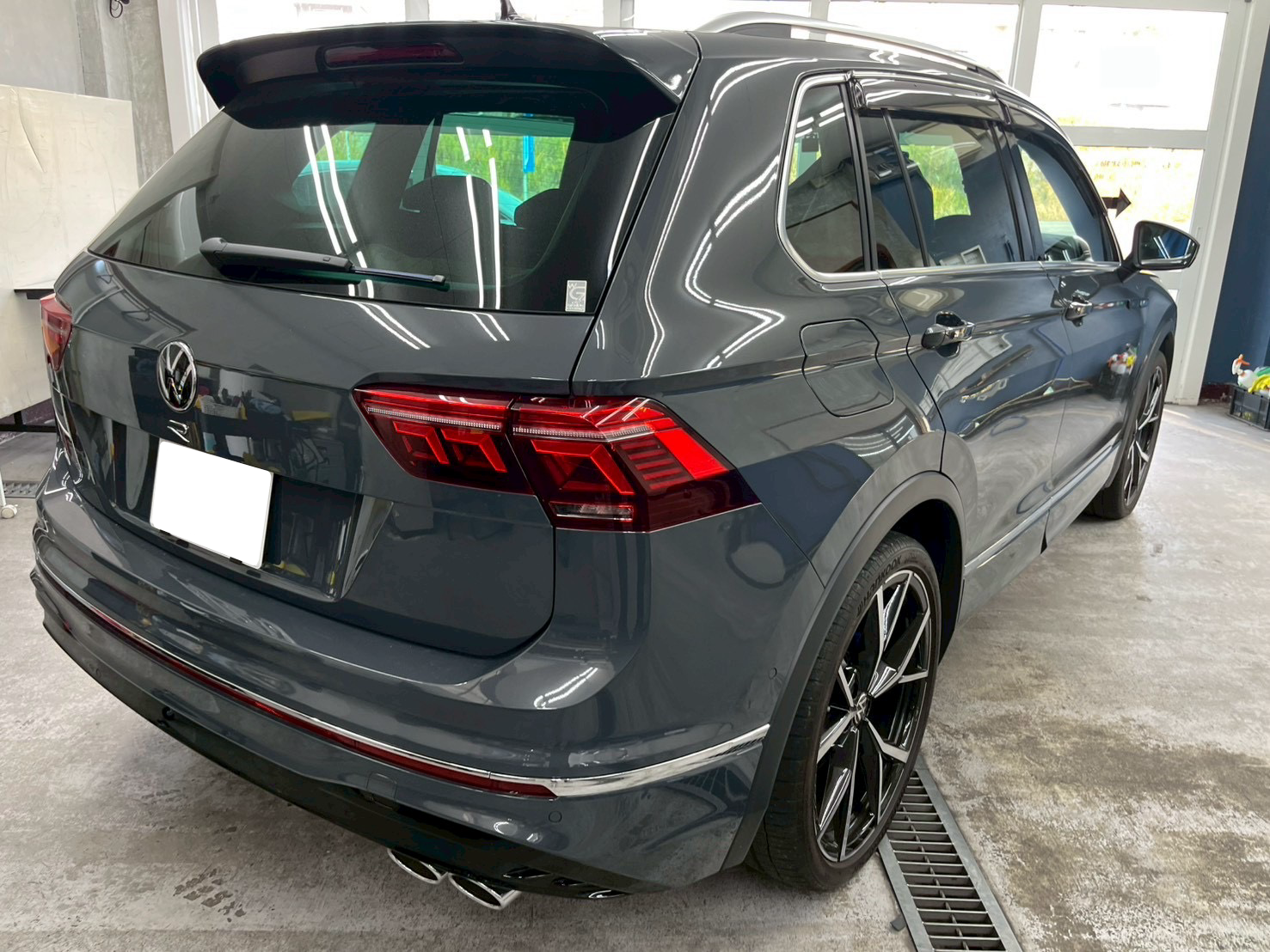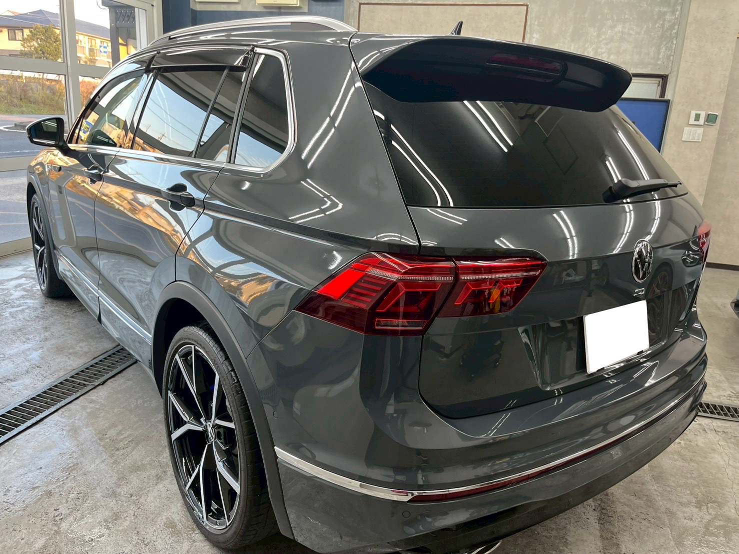 カーフィルム、フォルクスワーゲン ティグアン リヤ全面(7%)遮熱スモークフィルム施工