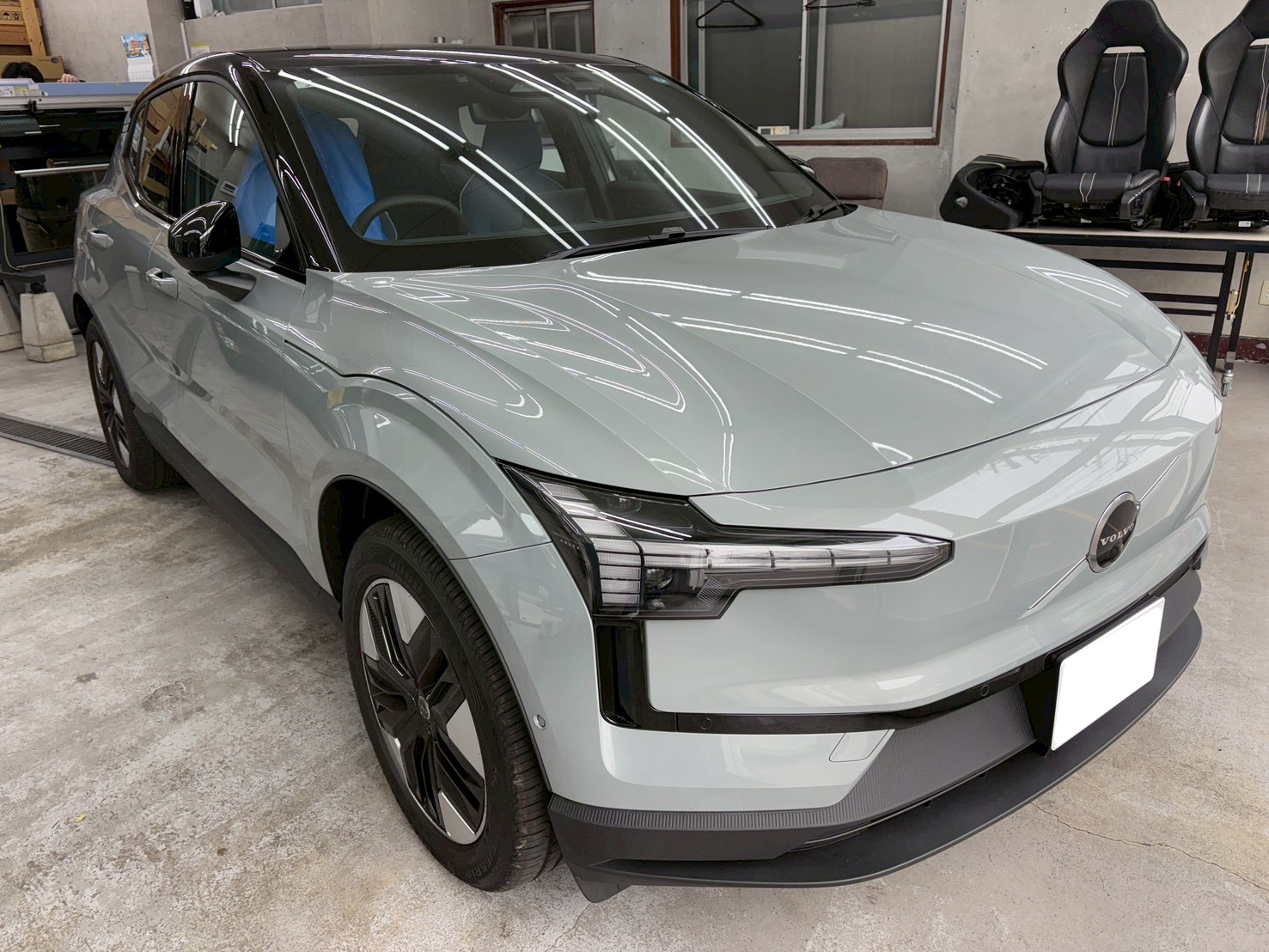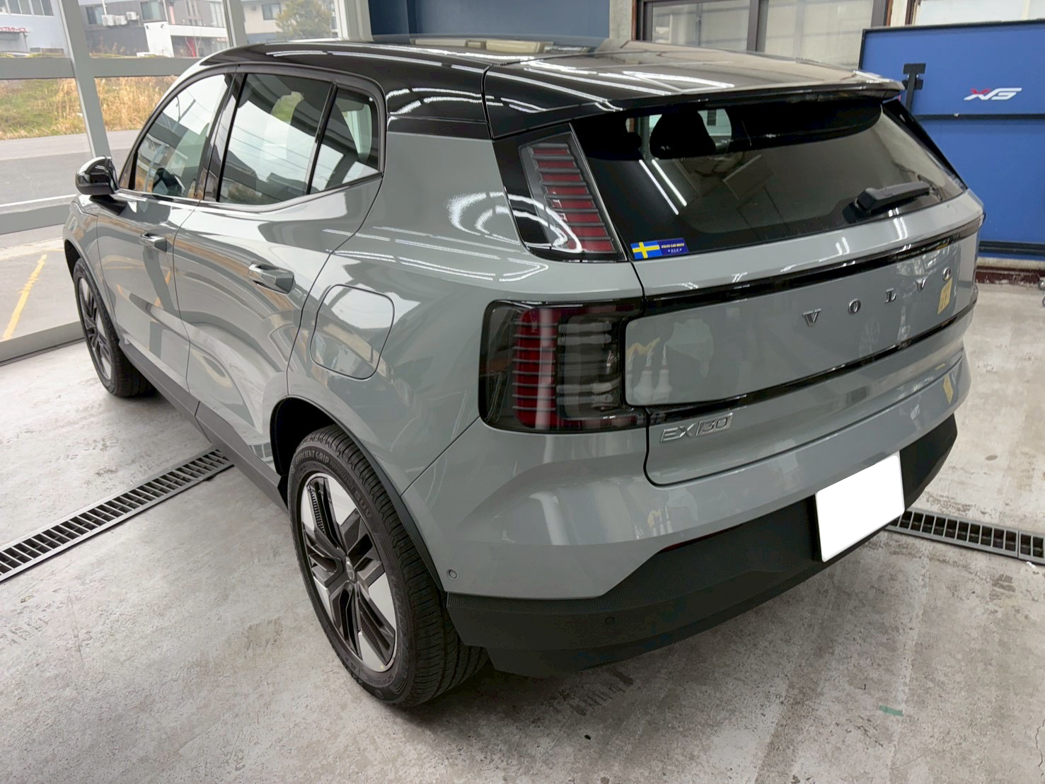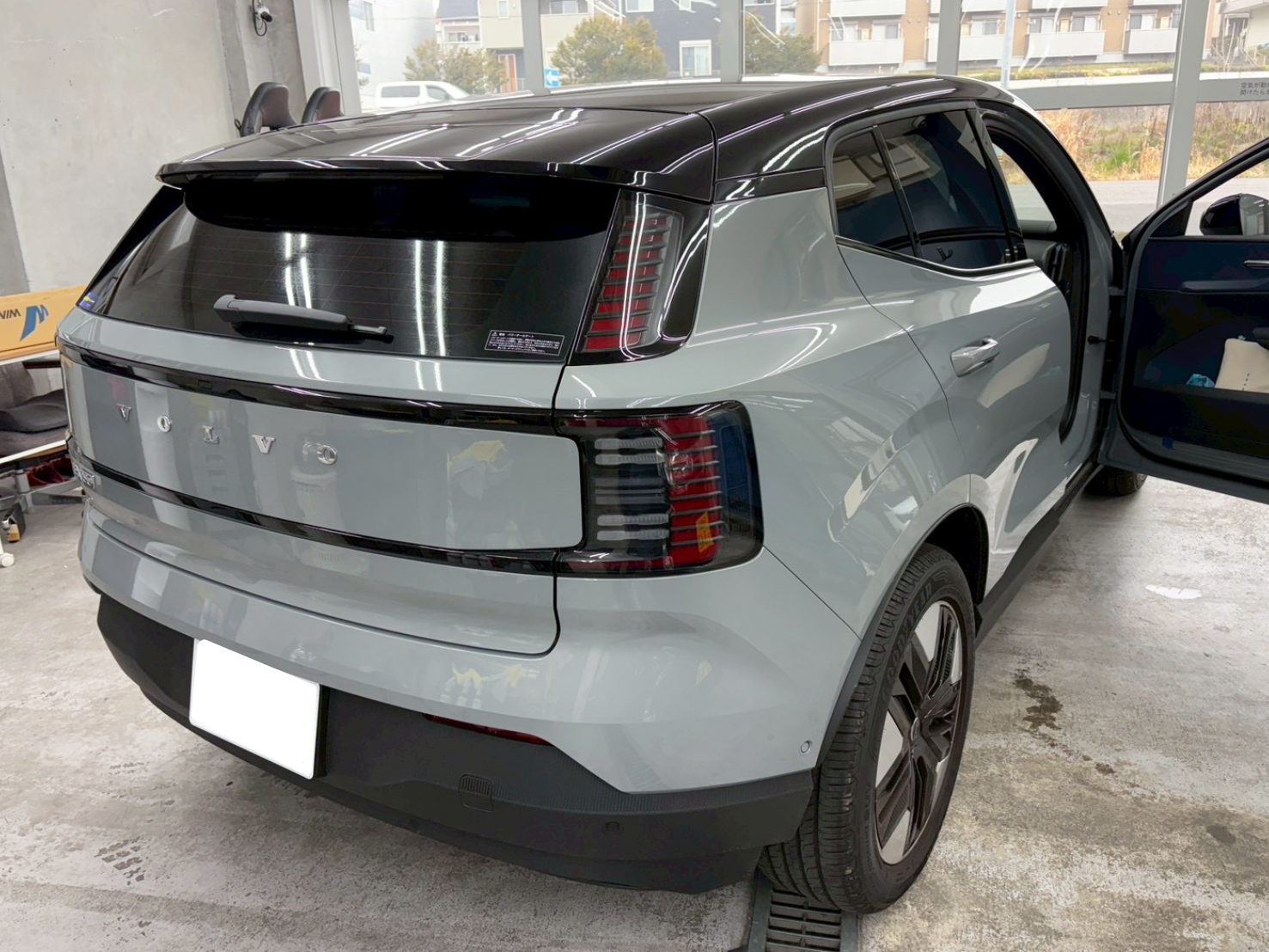 カーフィルム、ボルボ EX30 リヤ全面(7%)遮熱スモークフィルム施工