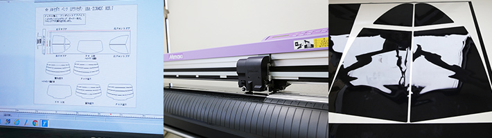 フィルムは、コンピューターカットで切断します。車種ごとのデータを用いて切りますので愛車の窓にぴったりとフィットします。国産車はもとより輸入車も『車種ごと』『年式ごと』『グレードごと』のデータを元にカットしますので、満足のいく仕上がりになります。